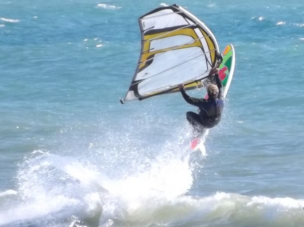 и чтобы не заходить на бэклуп, который провоцирует очень острая волна, я со всей силы приоткрыл парус, чтобы без провокаций посадить доску вниз!