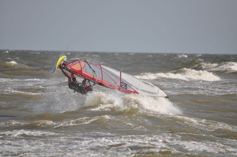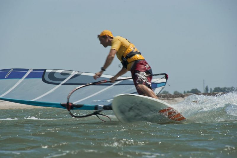 Как назло в Кириловке была отмель, и приходилось долго пешкарить с доской в руках, лазить по колючим огурцам чтоб выйти за мыс. Но он стоил того! Это единственная деталь матчасти которую я кроме дизайна не смог раскритиковать вообще, и это учитывая что плавники я критиковал больше всего остального, после гиков разумеецо... Плавник круто идет против ветра с довольно приличной скоростью. За два дня гонялок в различных условиях я, весом 97кг, так и не смог поймать на нем спинаут, даже на формуле с 700тым дрейком я их ловил хотя бы пару раз надень, а тут я специально не мог сделать его! Что я только не делал, переставлял степс, задавливал кормовую ногу, ходил вниз и вверх по ветру на разных скоростях – пофиг! Плавник идет как по рельсам! Мало того, пару раз доска вылетела на крутом чопе и повернула нос против ветра, эта ситуация обычно заканчивалась спинаутом или даже хорошей уборкой если только не подвернуть вовремя нос чуть по ветру, но в этот раз я сделать этого не успел, а доска резко дернулась и сама стала на курс даже не потеряв скорости! Позже, этот эффект я начал применять себе во благо, на крутом чопе просто закладывал парус на полную, без всякого «облизывания волны» доверяя эту работу плавнику, и тот ни разу не подкачал всегда возвращая доску на место! Я слез и начал рассматривать это чудо...Сколько мы меняли плавников, шлифовали их, пытались не давить на корму, все это помогало лишь частично, все советы по стойкам против спинаутов можно свернуть и кинуть в топку! Я не пробывал Дебош, но Ураган хорош, очень хорош!