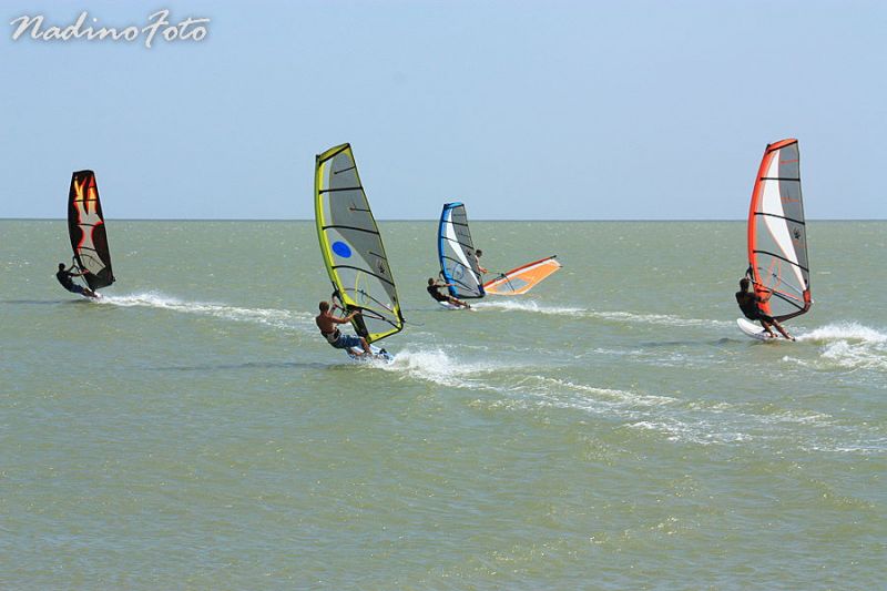 На прайдовском сайте лежит видео пособие по сборке парусов 2011 RS:RACING and RS:SLALOM, просмотрев его 3 раза приступил на базе к сборке. Достал, выкинул ленточки, осмотрел, дизайн неплох но ничего особенного, пошив качественный, некоторые ответственные места прошиты 4ным швом, ни лишних ниток, ни грубо отрезанных кромок внутри м.кармана я не нашел, если делать все по инструкции парус действительно набивается очень легко, и со вставкой камберов проблем не возникает, что не скажешь про латы на плексигласовых клипсах которые отщелкиваются очень тяжело, а при защелкивании намекают на отказ. Система защелки задней шкаторины (с дурацким названием «изи клю») работает легко, но сам принцип установки гика периодически доставлял геморрой, для установки в отверстие нужно сначала выдвинуть заднюю оковку гика на 4–5 делений, а затем воткнуть ее обратно, при разборке сделать тоже самое. В моем случае гик я купить не успел поэтому попросил «какой нибудь» на пару дней подходящий по размеру, задняя оковка конечно прикипевшая была, и операцию по ее перемещению я оба дня проклинал, один раз утром, и один раз вечером...Из всей нашей толпы приехавшей на среду и четверг в Кириловку на воду вышел позже всех, как педант пытаясь сделать все правильно, ходил по берегу и задалбывал гонщеков клея в поисках правильных советов по настройке твиста, пуза и лат. Интересно то что по инструкции к мачте 460 положено 10 по удленнителю, я так и сделал, за что получил пинка от Сережи Гунько, и добил твист до третьей латы. Позднее понял что нужно еще, и прилично, но моя спина ясно дала понять – или твист или я, угрожая лопнуть как карбоновая мачта. Так и не набив нормально пошел на воду.За два дня в Кириловке был разный ветер, интервал состовлял 6 – 15м\с в разное время, самое то чтоб испытать новый парус.Даже еще не войдя в глиссирование я почувствовал что он ведет себя иначе чем все что у меня было раньше, отсутствовала одна привычная деталь – дерганье. Обычно, если идешь в галфвинд не в глиссе но на хорошем ветру парус немного штырит в руках, если камберный то еще и подкручивает, этот – просто стоит, если подтянуть шкотовую руку начинает тянуть, сбросить – опять стоит и больше ничего, это было не привычно и я все время с опаской готовился к штыриву которое никак не наступало.Второе явление которое мне очень понравилось, что момент порыва передается резким ускорением а потом плавным потягиванием за траплямки и руки, и вообще, все что происходило с парусом, происходило очень мягко не вызывая паники, правда при пампинге эта мягкость немного мешала. Если охарактеризовать mk4 одним словом яб выбрал слово «комфортный».