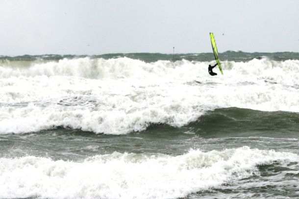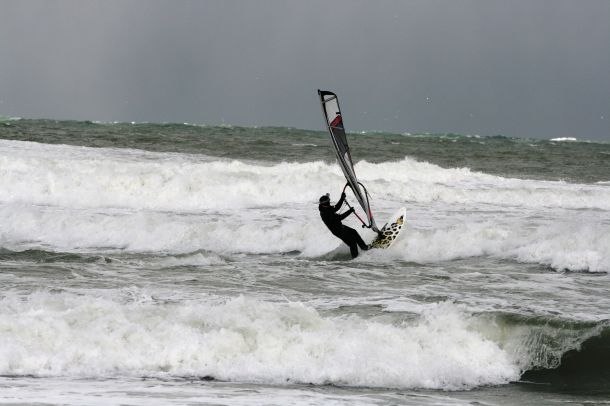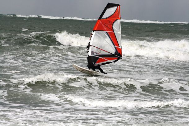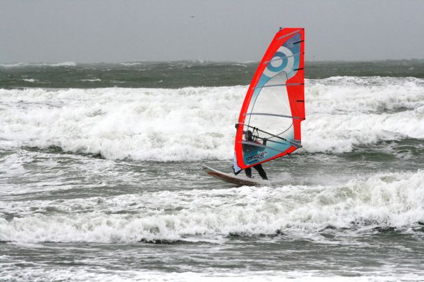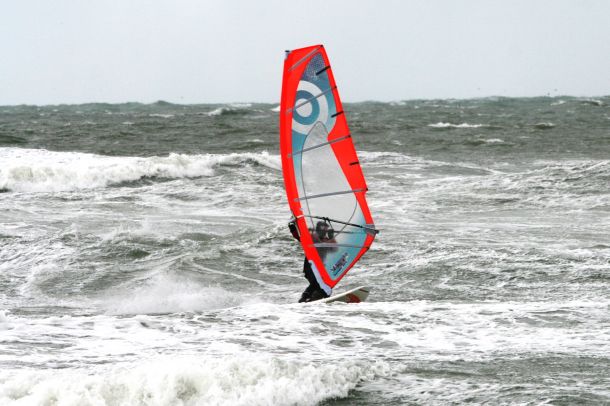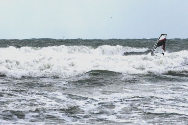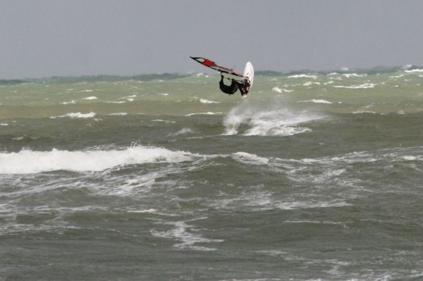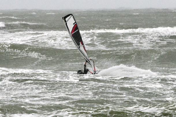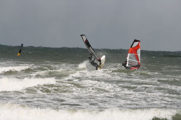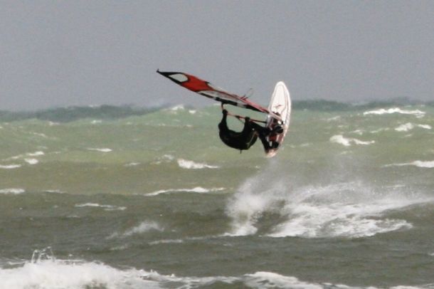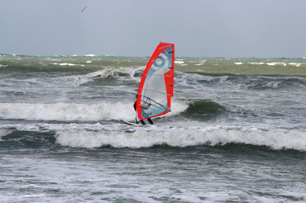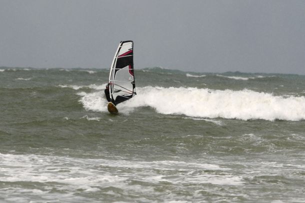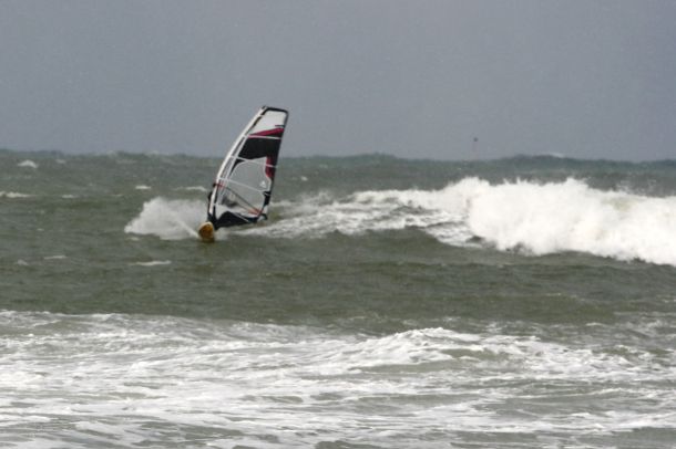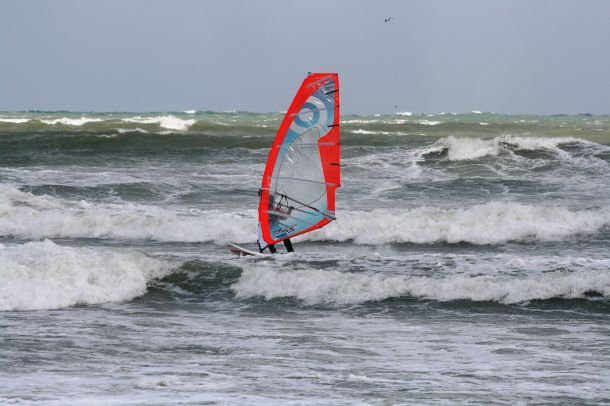 Ветер был очень порывистый и иногда было просто невозможно добрать парус,который изо всех сил вырывало ветром и доска просто проскакивала гребни волн не касаясь поверхности воды,а иногда очень резко проваливало,что приводило к полной потере скорости и лишь пойманная попутная волна помогала разогнать доску, которая продолжала набирать ход скатываясь с гребня волны!