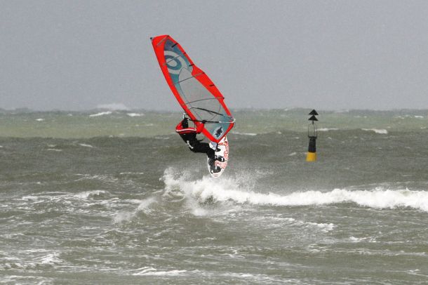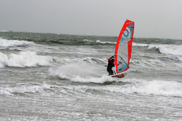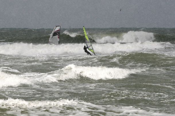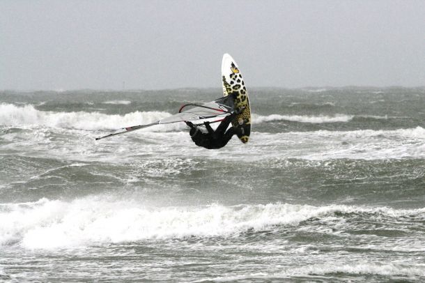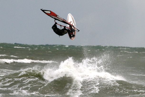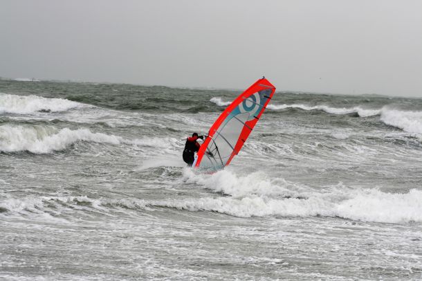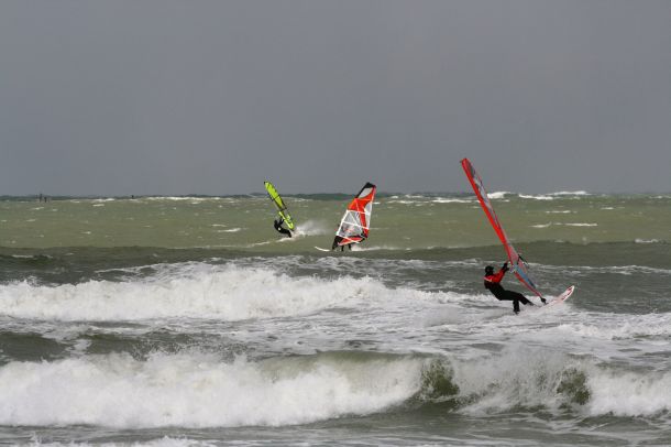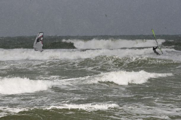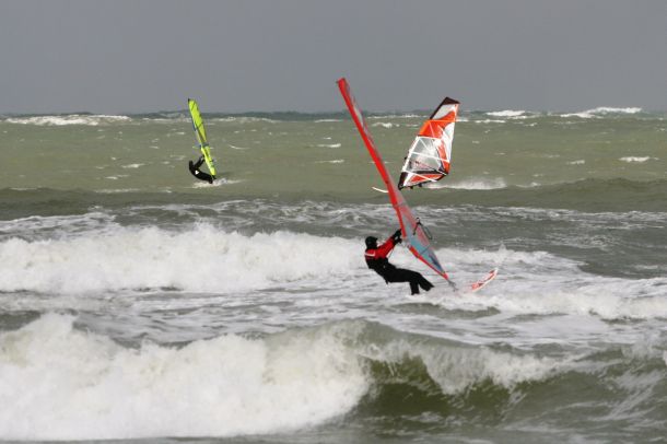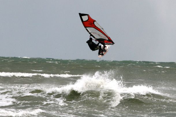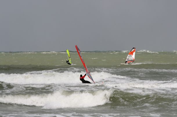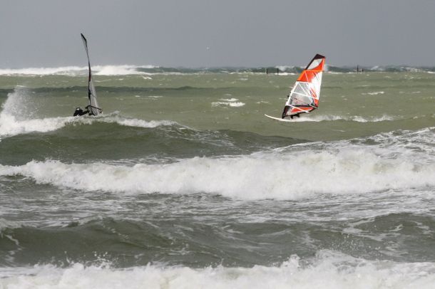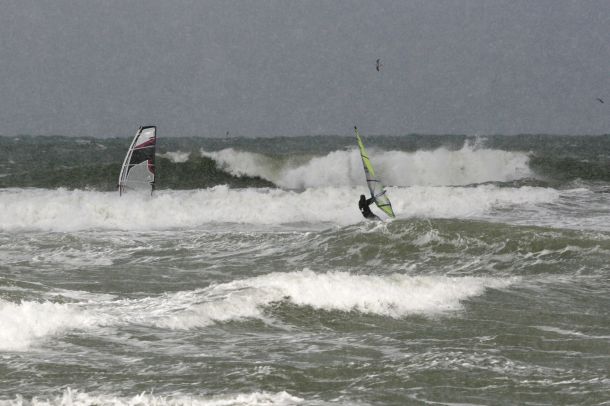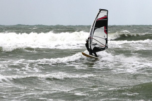 Ветер был очень порывистый и иногда было просто невозможно добрать парус,который изо всех сил вырывало ветром и доска просто проскакивала гребни волн не касаясь поверхности воды,а иногда очень резко проваливало,что приводило к полной потере скорости и лишь пойманная попутная волна помогала разогнать доску, которая продолжала набирать ход скатываясь с гребня волны!