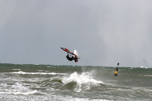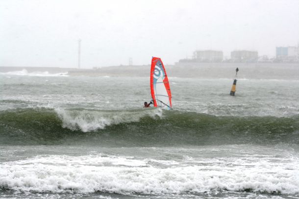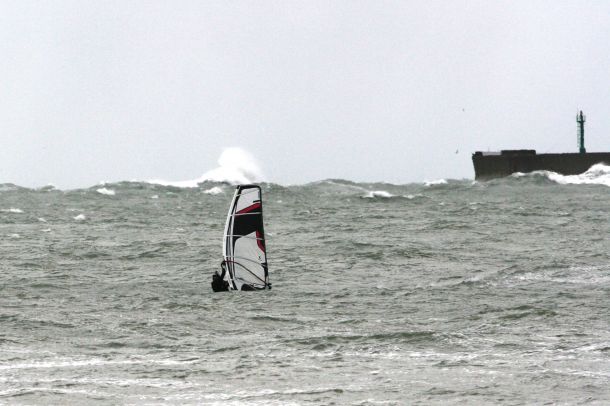 Уже при подходе к молу высота волны становилась такой огромной,что во время выполнения поворота фордевинд при уваливании с неё хотелось просто отвернуться и не смотреть вниз!А при неточно выполненном повороте можно было легко угодить в самое пекло- быть замытым вместе с матчастью и выброшенным на берег!