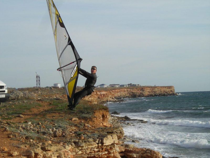 Но самое интересное,что правда,дует только здесь! -вдоль Юго-Восточного побережья Севастополя! Беру 5,8 и доску 105л,на ветру,правда,довольно тепло,да и вода ещё+16С!Так что начинаем катосить по полной- при отходе в море ветер нарастает до 12–14м/с,и парус начинает передозить,да и доску тоже,хотя волна в море не большая-где-то до 2ух метров! Ну а при подходе к берегу волна плавно выравнивается и медленно накатывает на берег,позволяя скатиться с неё и выполнить лёгкие вейв-райдинг элементы!