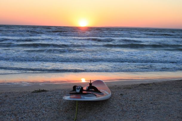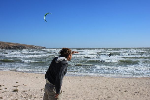 Зато в субботу так дунуло, шо ще стоя на берегу биля палаток Тарас мэни так и сказав – «кумэ, в таку люту годыну нэ соромно и всратысь!» ...»алэ нэ вид страху, а вид лютой нэнависти до того кацапського витру.» Как мне повезло, что месяц назад я купил своему малэнькому кацо парус 4,9 и, посмотря на прогноз перед отъездом, додумалсо кинуть его в машину – иначе бы атчоты вам некому было больше писать... Так вот, прикатываццо я начал на фалконе-95 и 7,0, а потом на очередном галсе катающиеся передо мной начали один за другим улетать в воздух, а бицэпс галсовой руки был на грани судороги – тогда я решил не рисковать здоровьем своей попы и попробовать парус своего малого. С первого же галса я заехал 54км/ч на этом аццком снаряде, его рвало и метало по сторонам, но я ипашыл на полном газу и не боялсо погибнуть... Это при том, что 7-ку так передозило, что я не мог ехать быстрее 52.