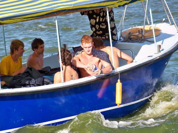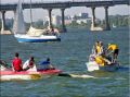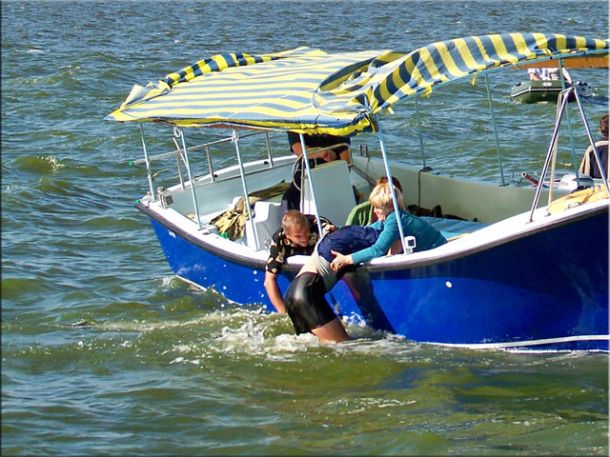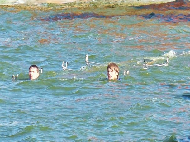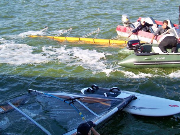 Далее я не претендую на истину, но, на мой взгляд, ситуация развивалась по следующему сценарию: видя, что такими тэмпами все призовые места позабирают каклы во главе с нашим гонщеком PWA, коцапчеги во главе с Макаром ночью тайно отправляют телеграмму с пометкой «срочно» Лужкову, который, как известно, даже тучи над всей Москвой может разогнать. Думаю там было написано примерно следующее: «михалыч зпт выручай срочно нах тчк призы уходят тчк включи хохлам такой ветер зпт чтоб обосрались вскл». Не знаю что они там утром взрывали, но первая гонка второго дня выглядела так: 150 гонщиков с выпученными глазами и растравленными парусами, каждый с мыслью «хоть бы не йопнуццо!», с невероятной скоростью несуццо к первому бую, думая только о том, каг бы остаццо в живых после поворота. Лично у меня было в этот момент такое напряжение, что сзади даже немножечко вылезла какула и попачкала гидрик. Подлетая к бую каждый второй, включая и меня, делают невероятную уборку, ежесекундно увеличивая количество плавающих у буя придурков в геометрической прогрессии. Сначала я минут 10 пыталсо сделать водный старт, потом я уже начал подумывать что вернут меня на берег только спасательные катера, но потом путём невероятных усилий я всё-же лечу к берегу спасацця от того лыха. Отдышавшись на берегу, я меняю парус на 4,9 и иду во вторую гонку. Дуло уже примерно 20м,с и при подходе ко второму бую в сильный увал я даже не мог полностью закрыццо – пришлось перед 3-й гонкой ещё добить свой аццкий парус для Гавайев. При этом я упал и на 1 и на 2 буе, меня 2 раза обгонял Иваныч – а это пипец какой позор для практичиски гонщега PWA, но гонку я кое-как прошёл. Не смотря на то, что каждый старт я брал почти последним где-то сто-каким-то, 3-ю гонку уже я проехал ещё лучше, обгоняя кучу дровосеков по гладкой воде у берега. Скорость перед 1-м буем на всех треках была 57–58км,ч, причём во всех 3-х последних гонках. Правда в 4-ю гонку я взял обратно 7,0 и заехал где-то в 20-ке, так как подкисло и мне стало довольно комфортно. Между делом я поинтересовалсо у Жертвы типа чо за херня – он сказал что никогда ещё на PWA не гонялся в таком кондишине, типа сам акуел... Между тем Макар и другие дахабские демоны на этом сквозняке валили так, что все смотрели и плакали, а вечером команда каклов даже провела у себя в штабе семинар под названием «ну лысый и херячит!»
