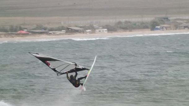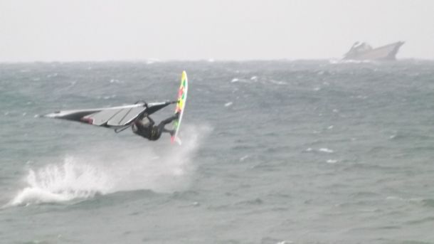 и чтобы не заходить на бэклуп, который провоцирует очень острая волна, я со всей силы приоткрыл парус, чтобы без провокаций посадить доску вниз!