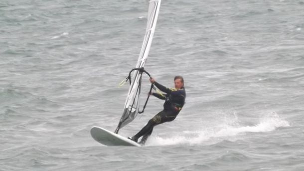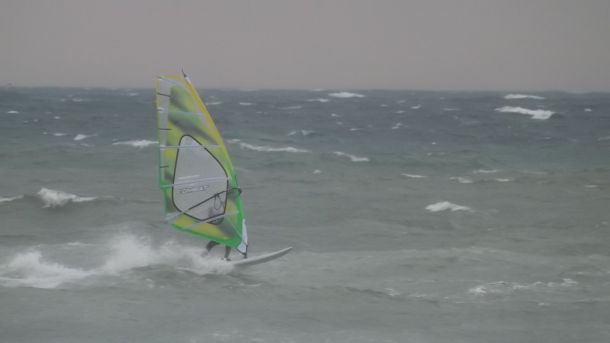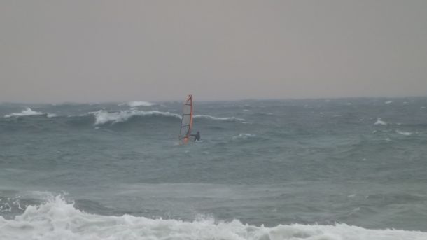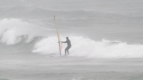 даже после того, как я поровнялся с забором и пошёл в плотный слив через прибой... В последнем сливе меня пару раз завернуло в парус и пришлось выковыриваться из него ногами...