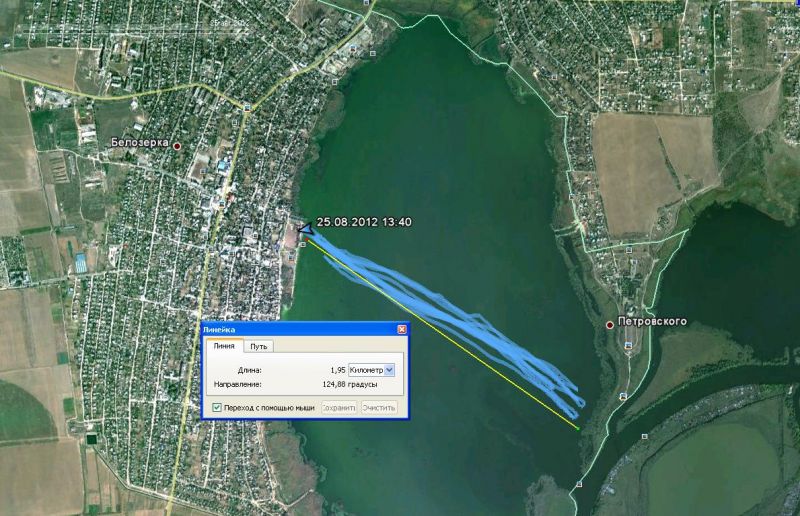 Лиман очень глубокий, в 20 метрах от берега уже по пояс, дальше глубже, на середине, думаю больше 10м, вода очень темная, цвет почти как в море, темно-синий. Сетей нет, рыбаков тоже. Рядом в пределах 8 км – никого. Даже при ветре от 10 м/с, большой волны нет, легкий чеп (не КВХ!!!). Для слалома идеал. Место очень классное, единственный минус – дорога, последние 100 км. Но под прогноз с палаткой на 2–3 дня – вполне. Сергею Гунько – особое спасибо за наводку на место!:)