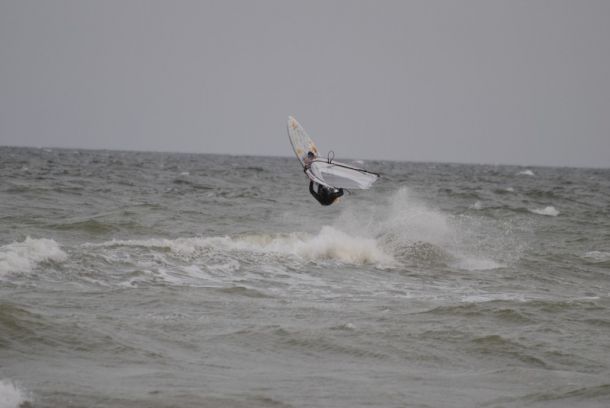 В ОБЩЕМ УКАТАЛИСЬ МЫ ПО ПОЛНОЙ! Выйдя на воду в восемь утра на пятёрке я вернулся с воды в восемь вечера сделав всего два перерыва по полчаса. Катанули и на море и на лимане попрыгали и погоняли на скорость, а при каждом следующем галсе под вечер просто начало сводить руки и ноги во время фордака! Еле живой и изнемождёный вылез из воды однако страшно довольным! Давно такого не было- первый мощный запад в Оленевке и почти двенадцать часов непрерывной каталки на вейве на пятёрке и на слаломке на семёрке, причём я их чередовал! Особенно понравилось прыгать на слаломке прямо в полосе прибоя, скоростуха позволяет выбрать чёткий трамплин и легко оторвать доску, правда очень сложно её правильно посадить.