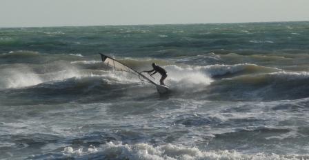 А у нас дунуло! В 12 часов в городе было уже 7-8м на порывах,тепло,+18,так мы поехала в казачку,вооружили 6-ки и пошли кататься!Проехав первый галс-пару километров в море Колян вернулся с мыслью-а может лучше 5ку,или добиться!В море дуло равномерно-10-12м.Мы улётно покатались часа два на передозике-зато как выстреливало вверх!Волнишку-то разогнало до 2ух метров!А когда подтянулся народ,катавшийся внутри бухты в 300ах метрах от нас при отжимняке на порывах,море стало плавно успокаиваться и передоз потихоньку отошёл-зато народ нормально катанулся уже на 5-ках!В 15,40 вышли с воды,а в 15,58 солнце уже село!...Так что Сашко,может лучше Ты к Нам?!!!
