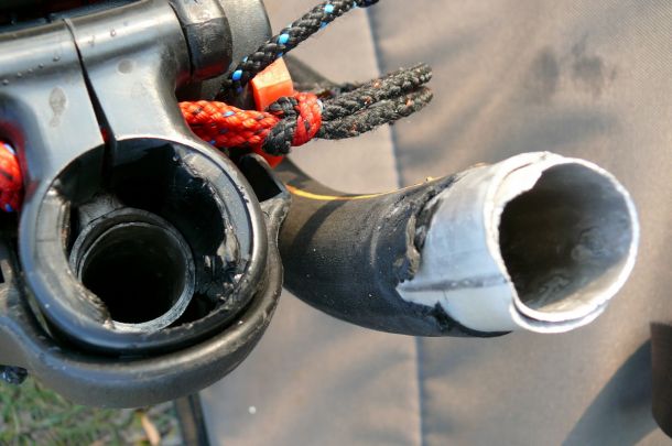 Найперша проблема була в тому, що передня оковка зроблена таким чином, що не дозволяє надійно закріпити гік на щоглі, якщо щогла RDM. Вийшов з положення болгаркою – акуратно відпиляв кусок замка, що дало можливість відкривати замок на більший кут і відповідно збільшувало зусилля при защіпанні. І до недавнього часу було все добре.