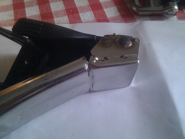 Там пластик, если греть - поплавится. Разобрать нельзя, заварено. :(