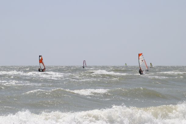 На волнах каталось человек 10, в заливе около 30. Прогноз еще стоит и на понедельник, каталка продолжается!