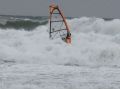 В один из проходов Краб кивком спросил как дела, типа чо не встаёшь?- я ему показал крест руками и он всё понял... Так он вёл меня до самого берега, катаясь галсами и контролируя моё положение даже после того, как я поровнялся с забором и пошёл в плотный слив через прибой... В последнем сливе меня пару раз завернуло в парус и пришлось выковыриваться из него ногами... А после обрушения одной из волн из паруса вырвало гик с куском мачты, а пока я разрывался, удерживая одной рукой доску, а второй пытаясь поймать гик, который был ещё целый меня накрыла уже не помню какая по счёту волна, вырвав у меня из рук всё то, что я так драгоценно спасал и так долго тянул к берегу! До берега оставалось уже не больше тридцати метров, как я изо всех сил крикнул стоящим на берегу Владу и Максу, чтобы они успели схватить хотя бы мою доску... Повернув голову назад я увидел, как Краб пытается спасти мой гик, это же Чинук!!!, соединённый с куском мачты... Когда и Краба несколько раз промолотило пеной я ему крикнул, что сам его вытяну, хотя он периодически скрывался под водой! Скрутив с Максом парус и вытащив доску мы упорно всматривались во вспененную воду в надежде увидеть обломки мачты, торчащей из гика!К всеобщему удивлению буквально через пять минут они вынырнули прямо под берегом и начали со страшной скоростью двигаться вдоль берега слегка отплывая в море!... Запрыгнув в воду я из всех сил ломанулся за гиком и только теперь понял, какое непредсказуемое бывает течение.., но его я всё-таки догнал!