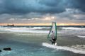 Так я и сделал и практически как только моя рука дотянулаль до задней лямки я услышал нарастающий гул следующих один за другим сетов волн, успев схватить второй рукой за вторую лямку я попытался нырнуть под воду, перевернув вверх днищем доску! Немного дёрнуло, но несильно и протащило совсем чуть-чуть, так как парус сработал как плавучий якорь. Следующие сеты рассыпались раньше и я уже не подныривал. Трезво оценив обстановку заметил, что парус прокрутило так, что мачта поломалась в трёх местах, но гик и парус ещё целы, значит надо тянуть! Первые попытки грести в сторону берега по диагонали, либо по дуге были минут через двадцать отвергнуты накорню!...Я никуда не двигался, а пенным течением меня оттягивало за маяк!... Я вспомнил, как я ет пятнадцать тому назад поломал мачту в пяти километрах от берега и мне пришлось грести часов шесть... В то время в море тоже была заметная 2–3-х метровая волна , мешающая меня найти, так наши сёрферы объехали весь город в поисках меня при выходе из Омеги аж до северной стороны, Генералов и Токарев Лёха мне потом чуть не наваляли только за то, что я грёб не по ветру, да и течением меня несло как то против ветра...Вышел на берег в темноте в 10 ночи в Парке и спокойно скрутив останки матчасти пешком пошёл на проходную Яхт-клуба, где вахтенный при виде меня с матчастью сразу налил мне стакан водки!...