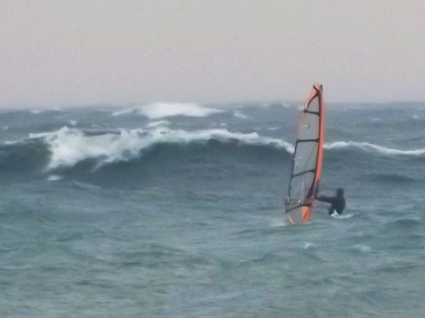 А делал я это только потому, что ждал волну трёхметровую- четырёхметровую и чтобы не тратить силы на мелкие ЧОПЫ, коими они в тот момент казались! На самом деле я хотел пояснить, что в этот день я откатал часов пять- шесть на море при начале шторма, но плавно нарастающего, поэтому я уже отработал все силовые элементы и плавно размялся, то есть был готов к этим нагрузкам!