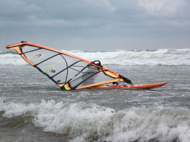 Итак всё что я успел сделать до дого, как... так это набрать в лёгкие побольше воздуха и изо всех сил вцепиться в парус!... А потом началось...сёрферы называют это Ринз Сайкл, когда тебя вертит как в барабане стиральной машины- если хотите понять, как это выглядит,- просто закиньте в стиралку свои старые джинсы и включите её на самые большие обороты, посмотрите на них сквозь стекло...- такое же было и со мной!... Многие профики говорят- держать снарягу надо до последнего, ни в коем случае не отпуская, а то может поломаться.... Я так и сделал...Держал до последнего...Пока не почувствовал удар и ослабление нагрузки... ... А ещё у меня вдруг закончился воздух...Я уже точно понял, что это была мачта и чтобы её обломок не впаялся мне в голову, я разжал руки... ...попытавшись открыть глаза под водой ничего кроме пены не увидев и полностью потеряв под водой ориентацию доверился инстинктам, и плавно разгребая слои пены довольно быстро оказался на поверхности! Оглянувшись кругом понял, что вокруг меня в радиусе сотни метров была одна только пена, и плавать в ней на поверхности довольно сложно даже в длинном 5/4 гидраке! Пришлось довольно эффективно поработать руками и ногами, чтобы подтянуться к остаткам своей снаряги, плавающим метрах в десяти от меня...