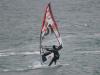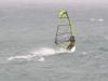 К 12ти часам дня все спортсмены стояли в полной боеготовности ожидая сигнала о выходе на воду! Но пока судьи поставили дистанцию прямо перед выходом из бухты, то знаки уже начало сносить волной и ветром, порывы которого за мысом достигали уже 14 м/с! В общем к часу дня решено было отменить все гонки на сегодня и все спортсмены были отпущены! Но несмотря ни на что некоторые тренера всё же погнали свои команды тренироваться на воду, одними из первых выскочили на воду Белорусская сборная и лишь несколько украинских экипажей. Тренер сборной Белоруссии Владимир Холодинский выгнал на воду и всех спортсменов на парусной доске-РСХ. Я впервые увидел с какими скоростями ходят в глиссировании яхты -"470ки" и "Лазера"! В это же время первым выскочил и наш сёрфер -Макс на 5-ке и 72-ух литровой доске,затем ломанулся Саня Тугарев на 5,2 и 82ой джипихе,(это его прыжочек на 7ой фото), ну а следующим пошёл наш ученик Димон на 100-ке и 4,2 парусе! Когда они вернулись(Димону пришлось подгребать вплавь-так сильно штырануло!) , Макса тоже разрывало, на воде оставался только Тугарев, с воды вышли последние яхты - на 470-ке поломало верхнюю часть мачты, но они дошли сами, а один Лазер притянули катером с полностью поломанной мачтой! Вышла Юля на 4,2 за ней Саня на 4,7, потом я на 5,0! Несколько галсов и - полный пипец, руки забились сразу, доску 85-ку подрывает ветром, в парусе полный передоз! Мы все вернулись на берег, а вертущка уже раскручивалась с 14 до 18 м/с!!! Какая нафиг пятёрка?!!! Саня поплыл спасать Юлю, глядя как её начало перелистывать вместе с матчастью словно странички открытой тетрадки, так и сам еле вернулся к берегу!