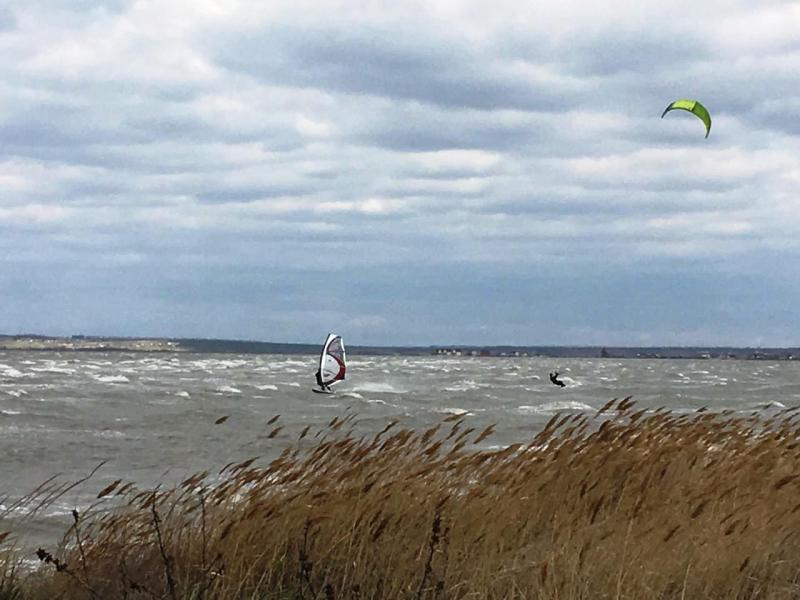Сегодня было продолжение, парус был побольше 5.1м. , однако и ветра было побольше 17.2 м.с., в итоге укатался в хлам, с пердодозом ))) Правда уже на Белосарайской косе, и ветер С-З иногда был град и дождик, но не долго, болше солнце слепило глаза и температура 10 гр.